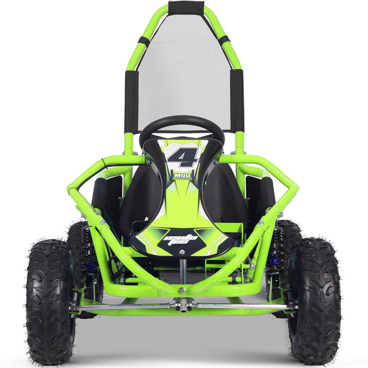 MotoTec Mud Monster Kids Electric 48v 1000w Go Kart Full Suspension Green, Top Speed: 10mph, 20mph Selectable Speed (weight dependent)